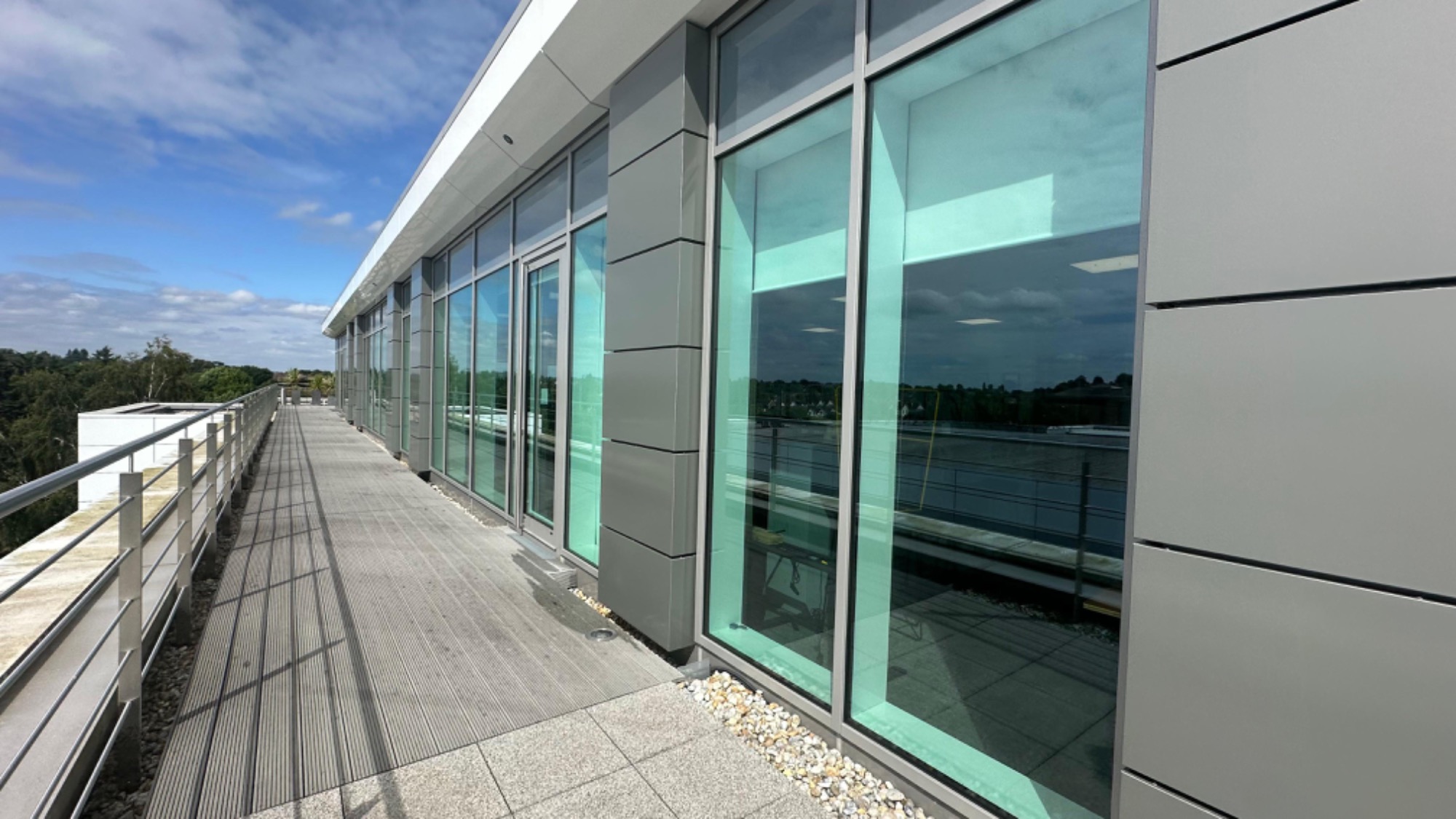 High-access window cleaning for multi-level stores and architectural glass features, performed with advanced safety equipment.